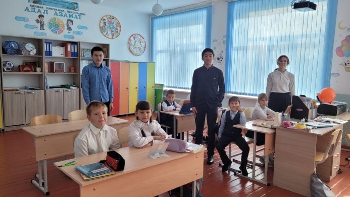 Аға тәлімгер Б. Б. Асылгареева бүгін 1-4 сынып оқушыларымен, сондай-ақ 5-10 сынып оқушыларымен ұжымды біріктіру ойындарын өткізді. Балалар стакандардан мұнаралар тұрғызды, бір қолында әуе шарлары бар басқатырғыштар жинады, жылдамдықпен ойнады. Балаларға шиеленісті азайтуға және шын жүректен күлуге мүмкіндік берілді.                                                                                        Мақсаттары: оқушылар ұжымын біріктіру үшін жағдай жасау, қойылған міндеттерді бірлесіп шешу үшін қатысушыларды біріктіру;                                                                                                                  Жағымды эмоциялар мен ішкі ресурстарды ынталандыру.